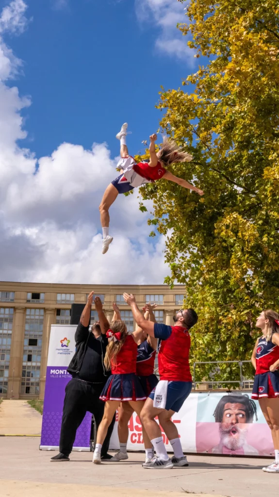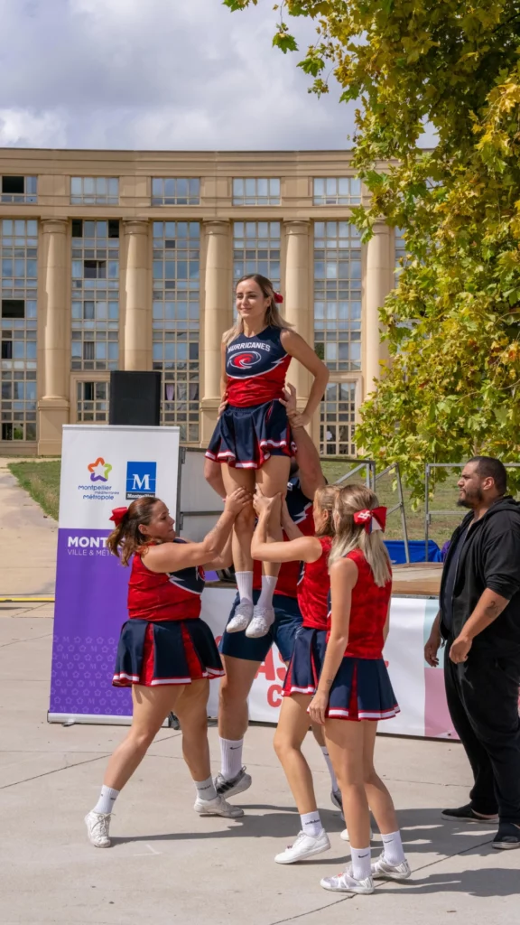 Le cheerleading est un véritable défi physique : force, souplesse, coordination et endurance sont essentiels pour réussir les sauts, figures acrobatiques et pyramides.